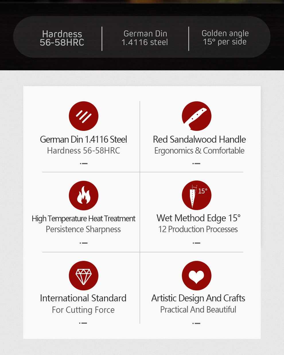 Blade Material:1.4116 Molybdenum vanadium steel of Germany ThyssenKrupp Ggroup